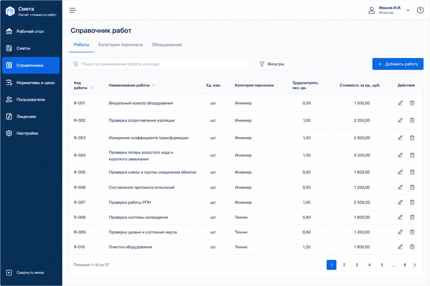 Разработали «умный» интерфейс, который помогает инженеру. Не нужно искать работы вручную: достаточно выбрать класс оборудования и его характеристики, и программа сама предложит список необходимых действий и состав специалистов.